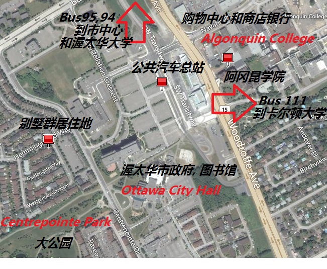 5分钟到AC,几步路就到公交车站,购物方便,适合工作人士, OU学生和CU学生Coop学生, 以及Algonquin学生入住。交通十分方便,有Bus 95路开往downtown, 渥太华大学,卡尔顿大学,和Kanata, 以及各路车开往各个方向。