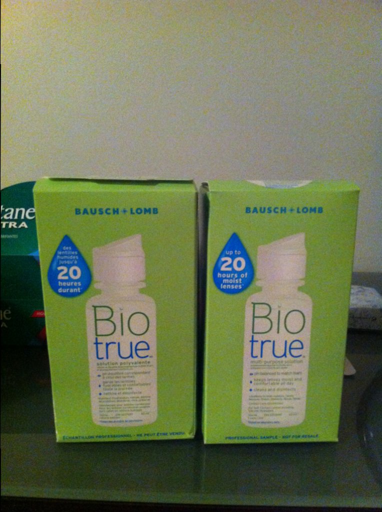 2. 全新未开封Bio true隐性眼镜药水两盒, 每盒里有60ml隐性眼镜药水一瓶+隐形眼镜盒子一个,保质期到2016年12月。$5两瓶都拿走吧。(Sold)