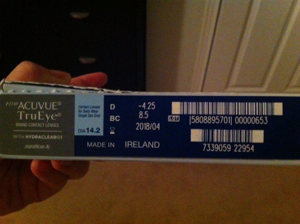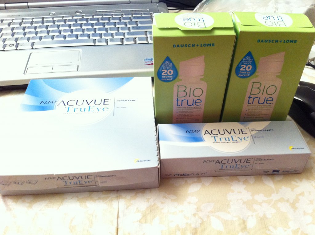 1.有一盒日抛型1DAY ACUVUE TrueEye,就是如下图中的一大盒,里面包括三个小盒,2小盒盒子都未开封,每小盒30片。另一盒盒子开了,盒里还有12片,隐性眼镜都是全新未开封的。就是一共72片,保质期到2018年4月。度数:-4.25(425度),原价Walmart一大盒都卖$98.99(见以下链接)我现在就半卖半送了,如果你度数合适,$50拿走吧.还送相同度数眼镜一幅(白色Miu Miu牌子的,见下图)(Sold)