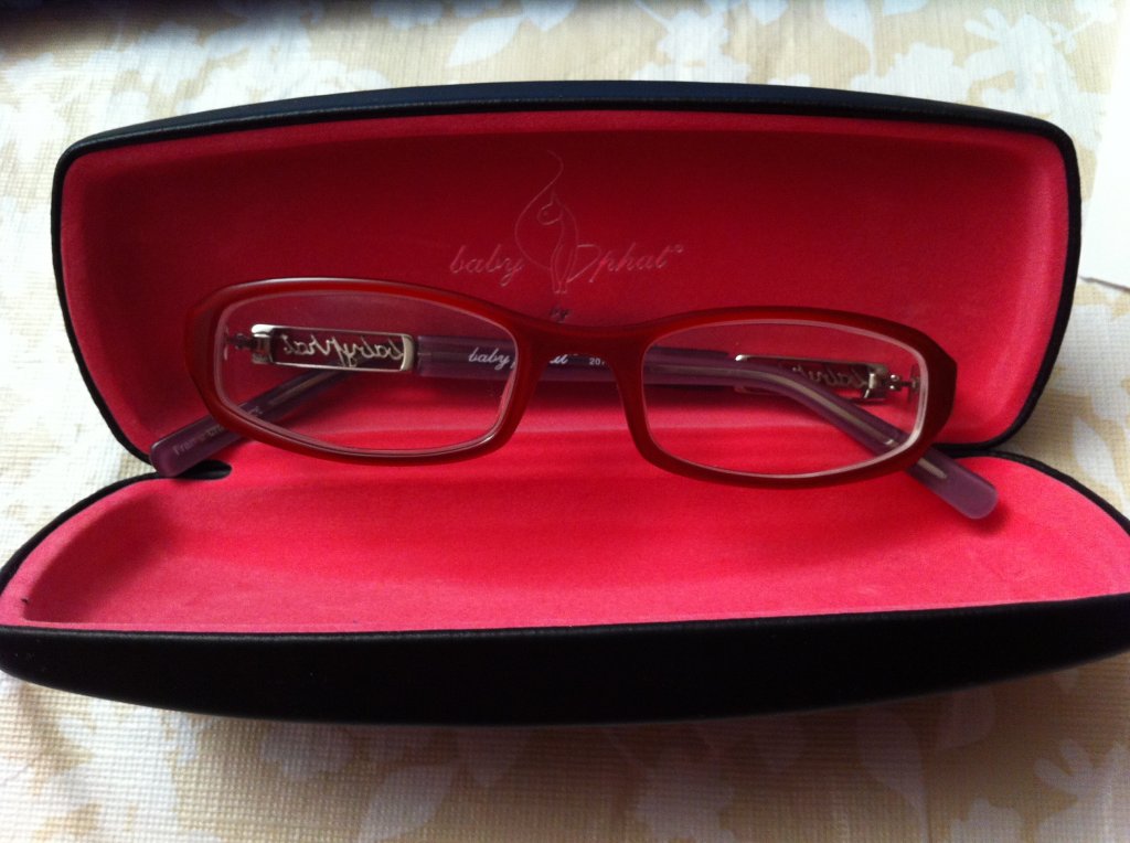 4. 全新Baby Phat红边眼镜,100%保真品牌,戴上很有气质。附带全新Baby Phat配套盒子和眼镜布。度数-425度,即便你度数不同也可以当眼镜架买上,去店里换自己的镜片。$40拿走吧, 可以换着不同风格戴。