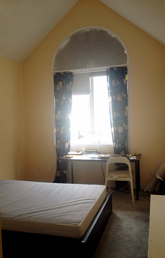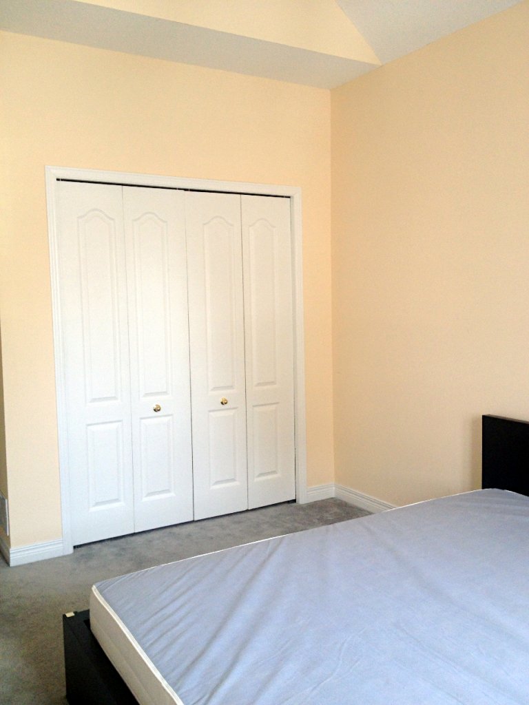 房间在二楼,家具齐全,queen size大床加床垫,一张书桌,一个书架,内嵌式大空间衣橱,全地毯,并且配有独立卫生间。