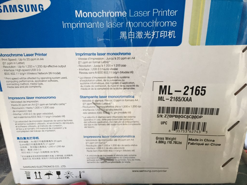 三星打印机 10刀 因为快没墨了才卖这么便宜,连接电脑的数据线也一起送啦(新的打印机都没有线的)