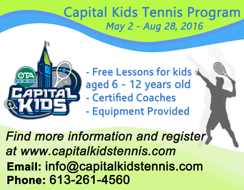 由安省网球协会、渥太华市政府合办的2016年夏季免费网球班开始报名