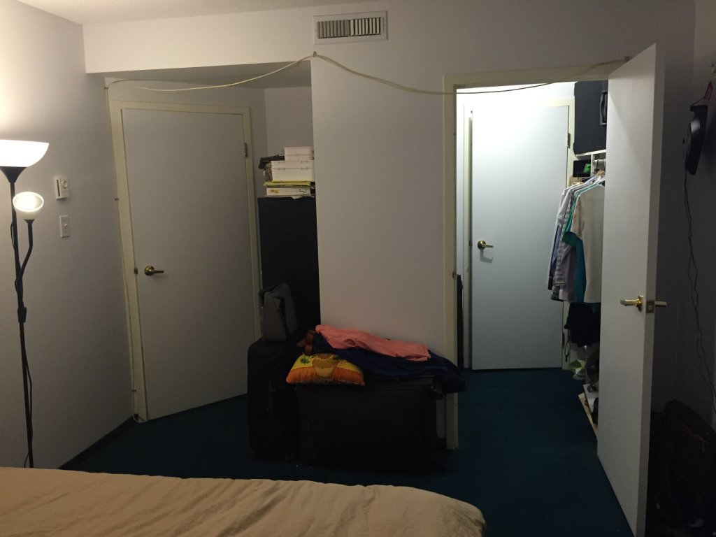 四月29日左右便可入住。 出租房间为两室一厅的主卧,自带一个卫生间(含淋浴房)以及一个衣帽间。房间里有一个queen size的床,一张较大的学习桌,台灯,落地灯,书架,储物柜,打印机。房子自带免费空调(只有171 Lees有哦!)。至于设施齐全,本人可借用租客电饭煲,榨汁机,搅拌机,双立人刀具及锅具,一应米油盐皆全。拎包入住不是空话!如若必要,可暂时提供被子床单以及枕头~