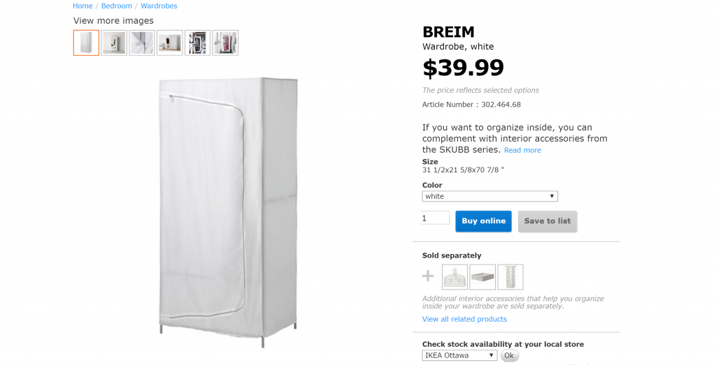 IKEA 衣柜,纯金属铁架,布艺套,使用前后加起来大概一年,15刀出,我的不是白色的,是淡淡的绿色,不知道为啥官网没有其他颜色照片 (sold)。