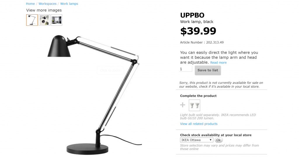 IKEA台灯,有三个IKEA额外适配灯泡,白色,用时一年半,不是图中黑色,一共要价25。
