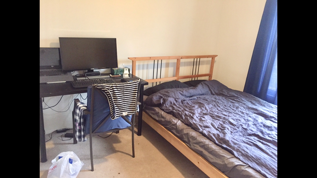 宽敞卧室,带家具,包水电暖,高速上网,室内有洗衣机,烘干机。