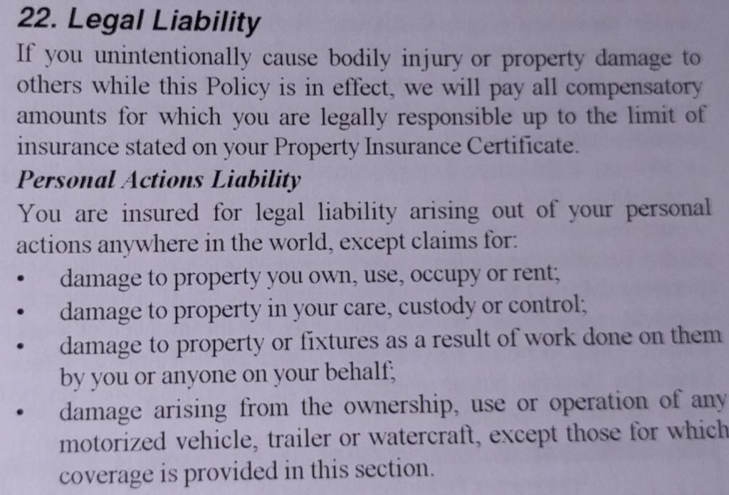 cucapila 资深人士 VIP 注册 2004-08-05 消息 7,730 荣誉分数 806 声望点数 273 2016-05-15 #20 你确定那货有房子? m234 说: 还记得前一段时间有个加拿大人到中国旅游, 在长城上撞倒了一个老人, 结果出了人命的事吧. 当事人后来说是被限制出境, 最终是以几十万人民币的赔偿了结了此事. 这种事谁都不想遇到, 但如过不巧那个当事人是你, 你会如何处理此事 ? 我也是最近才看到, 如果遇到这类事, 第一时间打电话给你的房屋保险公司, 你的房屋保险有这类赔偿. 刚看到这个说法我是很怀疑的, 于是查了一下: 点击展开...