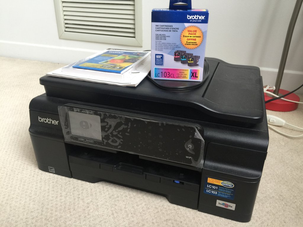 打印机 Model: Brother MFC-J650DW (免费送全新墨盒和相纸)只用了6个月左右,非常新,屏幕上的保护膜还在。 75刀