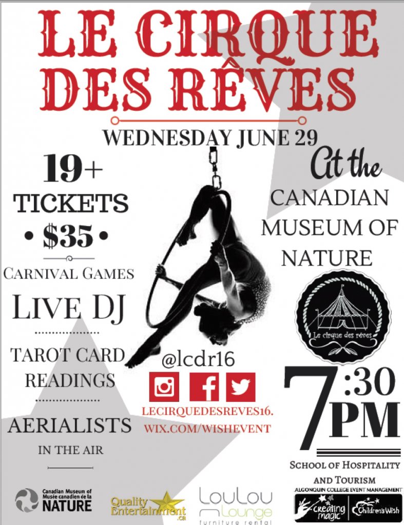 Le Cirque des Rêves 是AC活动策划专业的学生和Children Wish 慈善机构一起筹办的慈善活动。活动将会在6月29日晚七点半开始,地点在自然博物馆。