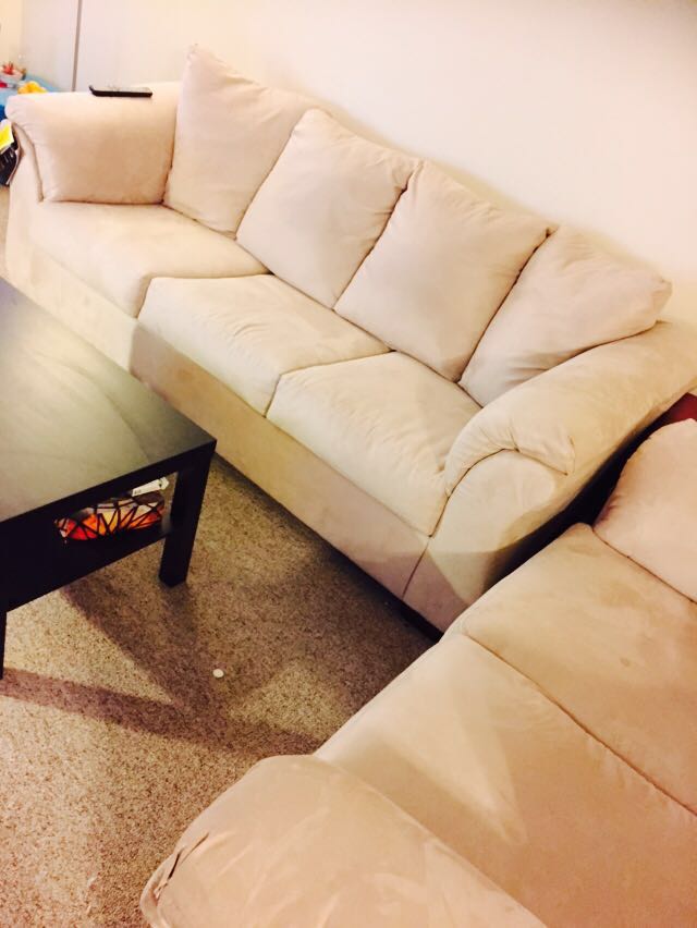 1 ..白色沙发床,,两件一套.三人座的是沙发床,床藏在沙发里面,,配套一个两人座