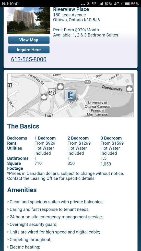 关于配套,公寓具有两个壁球室,一个游泳池,一家理发店,便利店以及pizza店。