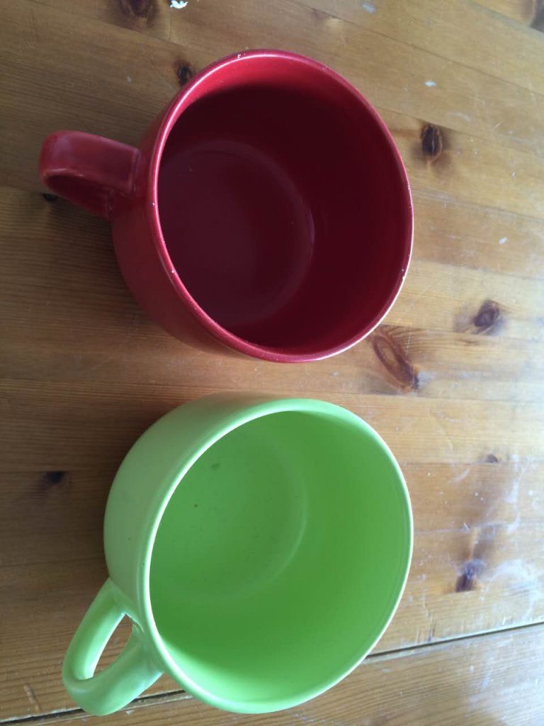 9. 彩色陶杯子加俩透明杯子(4个)$5