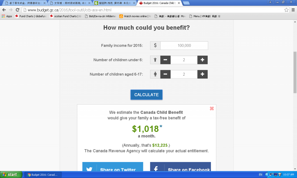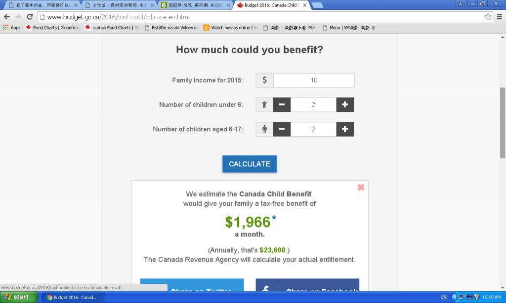 一个收入十万的家庭假如有四个孩子,几本没有儿童福利,还要交三万多税,剩下六七万养活一家人。不工作有四个孩子的家庭,一年儿童福利五万多,还有其它优惠。夫妻辛苦工作一年和不工作的人最后收入只差一万来块钱,真的没有工作积极性。加拿大这样下去会越来越没有竞争力,会完蛋的。政客们不管这些,只要赢了选举,其它都不重要。