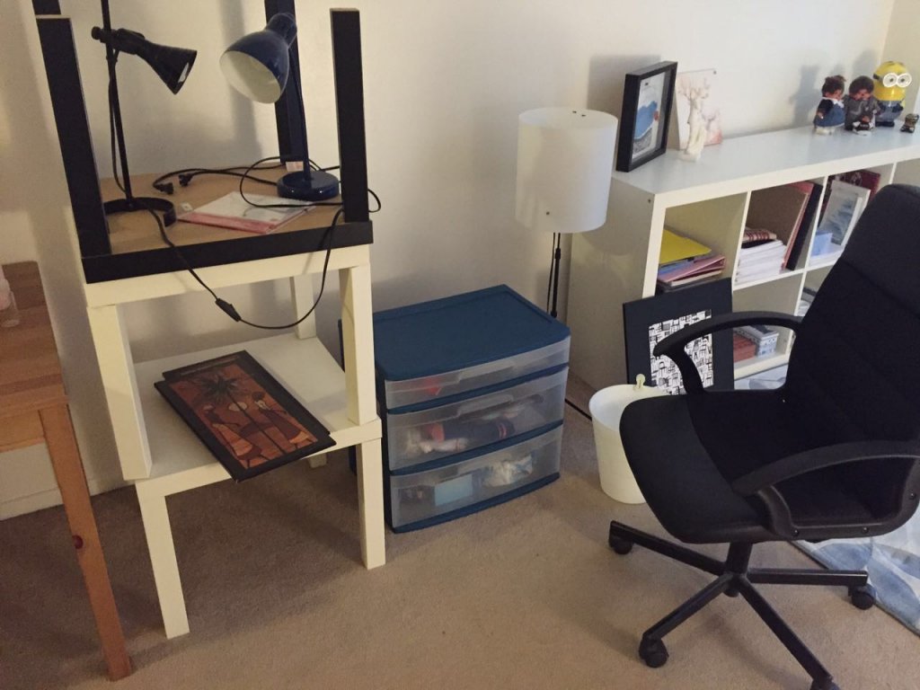 黑色小方桌 ---sold 2个白色小方桌,一个$8, 两个$15 塑料柜税前$25, 现在walmart打折也要22,很新,$15卖 转椅$42 台灯$15 each twin床垫一个$40, 一个$60 ----sold 2201 riverside, 联系6475280424