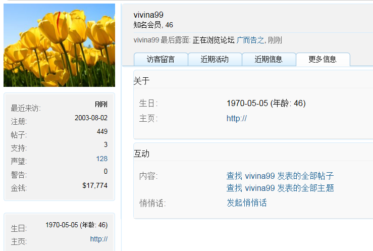 vivina99 知名会员 注册 2003-08-02 消息 557 荣誉分数 10 声望点数 128 2016-07-26 #6 ccc 说: 不知道如何找自己的帖子? 点击展开... 是的,分到广而告之里去啦。村长大人如何知道的?