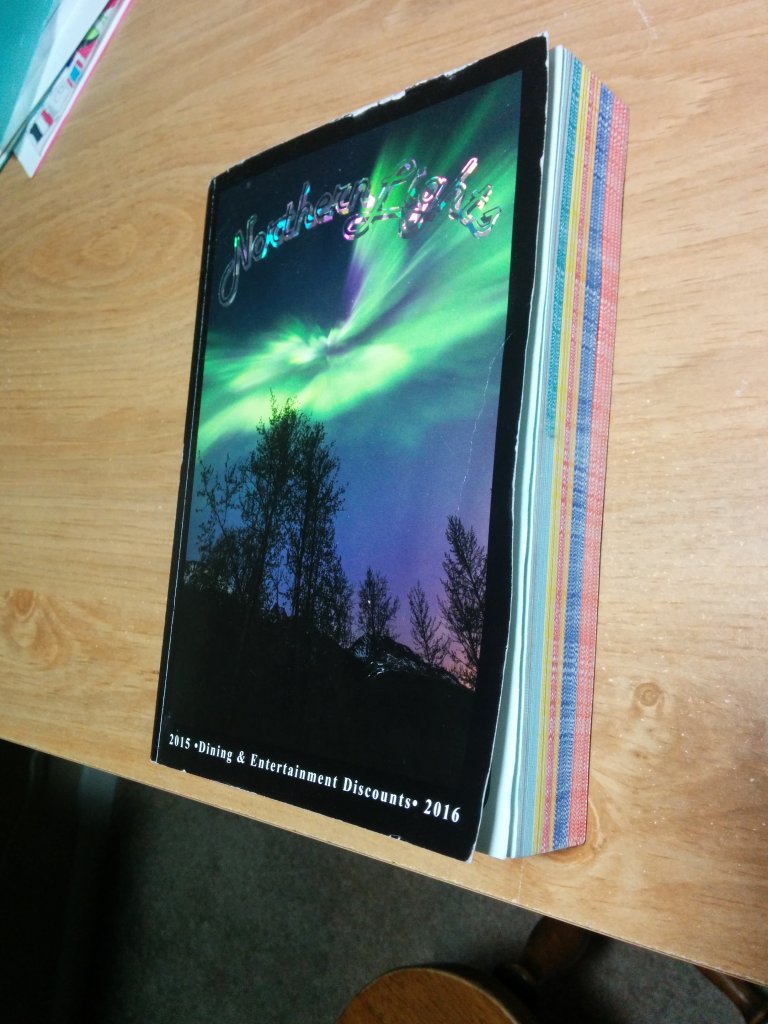 上个月去阿拉斯加旅游,买了一本阿拉斯加的Coupon Book(官网:http://www.alaska-discounts.com,所有具体打折信息都可以查询到),包括餐饮、娱乐、住宿、租车、门票等很多打折券(全本约400页,每页2~4个Coupon劵)。Coupon Book定价55刀,从该公司网站也可以买,但是要支付国际运费25刀,总价80刀。我们当时是到了安克雷奇后直接去公司现场买的,还花费了一些时间。