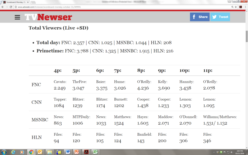 MSNBC ranked No. 4 in total prime time viewers, and No. 6 in total day viewers. CNN ranked No. 7 in total prime time viewers, and No. 5 in total day viewers.