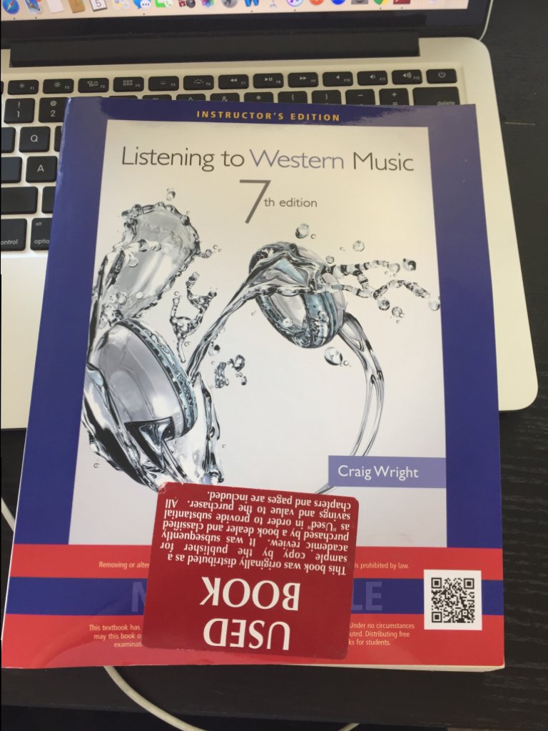 daisysun 新手上路 注册 2014-01-11 消息 7 荣誉分数 0 声望点数 11 2016-09-05 #1 Listening to Western Music (SELL) 7th edition BY Craig Wright 附件 WechatIMG2.jpeg 119.2 KB · 查看: 55