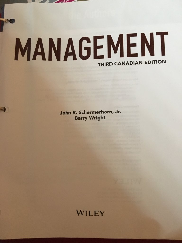 Adm1300: Management 3rd Canadian Edition by Schermerhorn&Wright