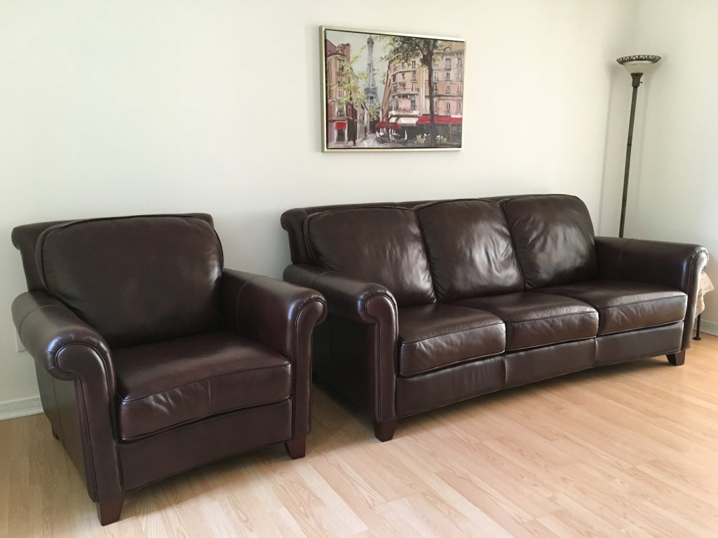1 Upper Room家具店的皮沙发2件套原价$3000+税,皮革保养的状态很好。现价$1200加元。浏览附件629579 2 宜家的实木电视柜九成新原价$300,图片的电视尺寸55英寸。现价$80加元