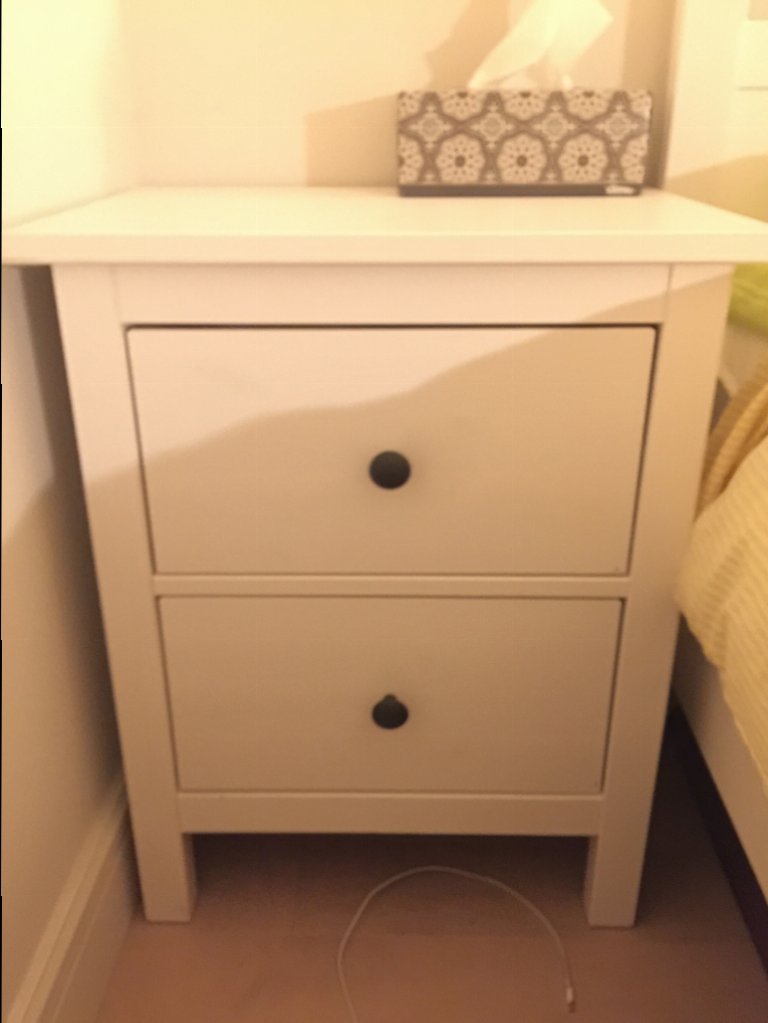 本人现出售 ikea 床头柜 和 椅子 均为白色 坐标ottawa 床头柜两个抽屉 购于去年 九月份 使用时间不超过半年 个人觉得适用于女生, 椅子是 昨天刚买的 回来之后发现买多余了 但是刚刚组装好 全新全新全新, 床头柜原价112税后 现85出 椅子由于刚买好又组装好 原价出40 有意者联系6138906120 可送货 可自取哟