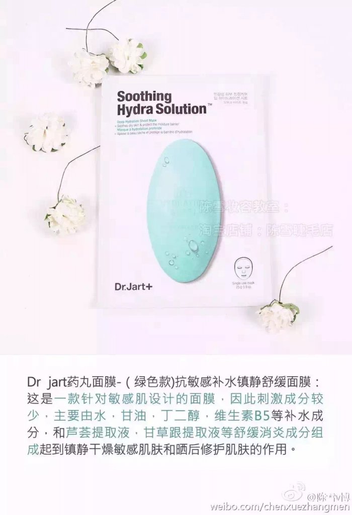 Dr. Jart+药丸面膜。 蓝色补水,绿色舒缓。 用了蓝色的,面膜纸很服帖,精华液是透明半啫喱状质地,很足够但是不会多到滴下来,敷完脸上剩余精华液不用洗掉也不会觉得粘,保湿效果杠杠的!敷完之后皮肤滑滑嫩嫩! 这款sephroa也有卖哦,税前7.5一片。我的价比sephroa打完八折还便宜哦~~想咨询的快加我微信:muxiaoqiqiqi