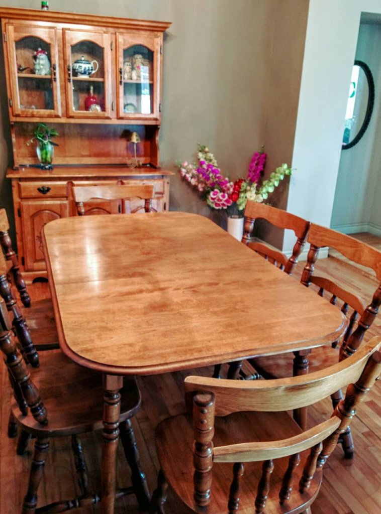 6.复古魁北克木质餐桌+6把椅子+展示柜 $480 (此物放定金后,30公里内可免费送货 )