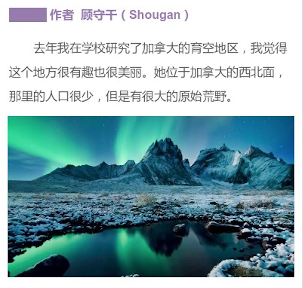 做一个学生我要上很多不同的课。我最喜欢的一个课是户外教育。我每三个星期才上一次户外教育。我们会学怎么用指南针、地图和其它在野外生活需要用到的工具。老师有时候让我们玩游戏,比如说大家一起在森林里寻找老师指定的十六样东西,或者跟我们一起搭一个帐篷。快下课的时候,老师会跟我们一起在森林里坐十几分钟,安静地观察我们周围。然后我们在蒂皮(TIPI)里,记录我们的活动。户外教育课非常生动,我们也学到很多知识。我非常喜欢户外教育。