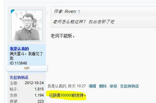 冷笑六声 择一城终老,遇一人白首! VIP 注册 2011-05-26 消息 8,793 荣誉分数 2,454 声望点数 323 2017-01-05 #47 我是认真的 说: 浏览附件655136 我还以为老大发善心给了500000CFC¥呢。 谢谢50000000000兄。。。 点击展开...