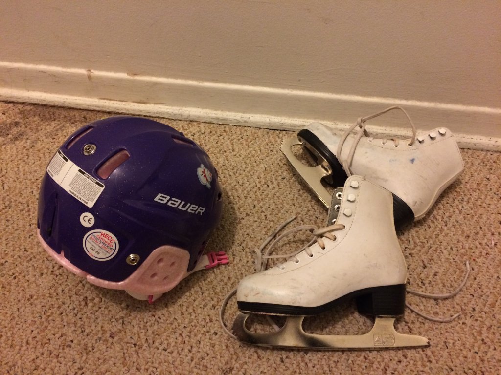 5-7岁女童滑雪专用头盔(2016年1月在Canadian tire购买,原价大约40多刀,小票忘记保存了)和二手冰鞋,25刀