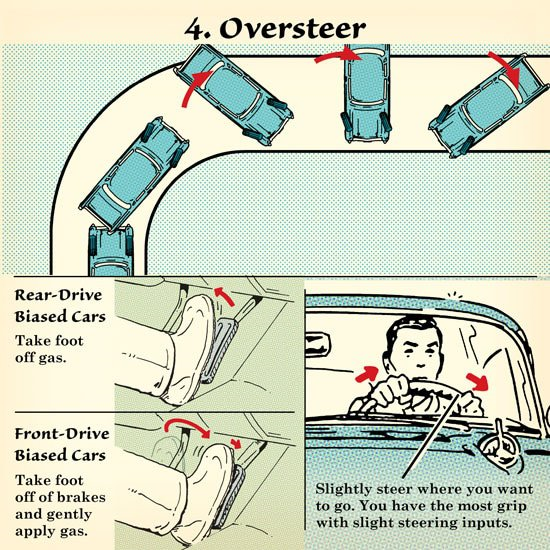 第二点不对。车屁股滑向右面时,方向盘向右转:所谓的“turning into the slide”。向右滑的大,方向盘向右转的多一些;车尾巴向右滑的少,方向盘向右转的少 ---- 不要over-correct。方向盘转的要快:不能“逐渐缓慢...转”。video中说的"over-react" or "over-correct" 是指方向盘转的太多,而不是转的“太快”。