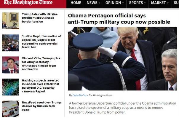 奥巴马旧臣语出惊人:或有军事政变推翻特朗普