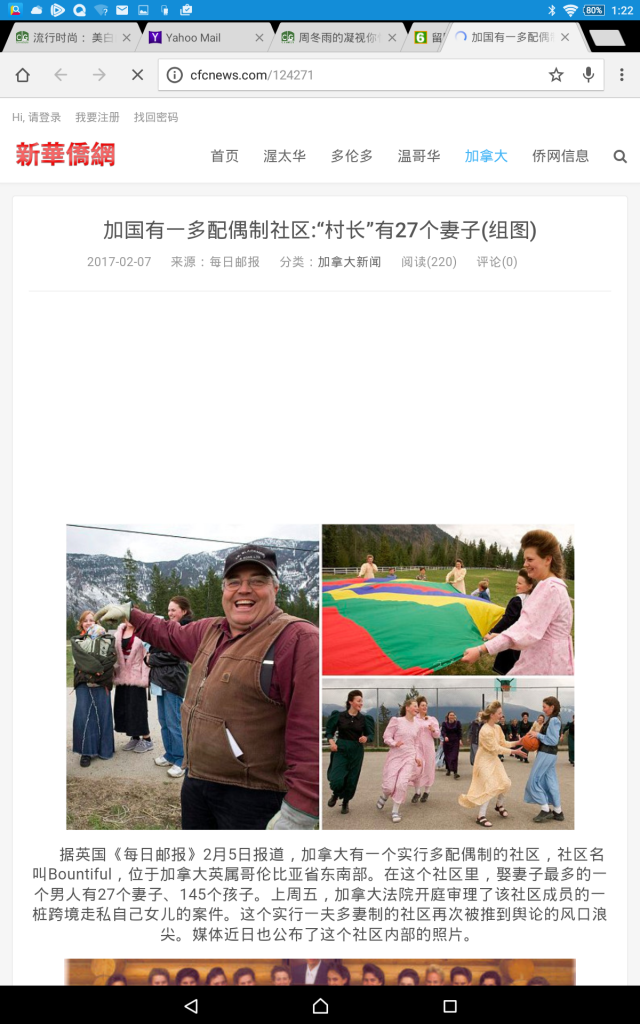 m234 说: 要看故事的在这里 http://vancouversun.com/opinion/col...amists-thrive-even-though-polygamy-is-illegal 点击展开... NND,其中10个老婆都不满18岁!