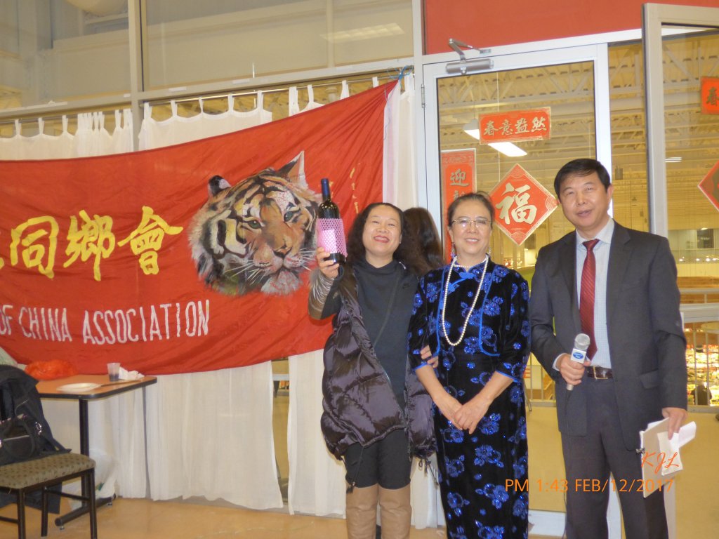 在这热烈的气氛中, 东北同乡会会长, 和统会执行主席: 郭玉秋女士, 向在座的各位致以新春的祝福:祝大家新春快乐, 元宵节合家团圆, 并预祝情人节美梦成真.