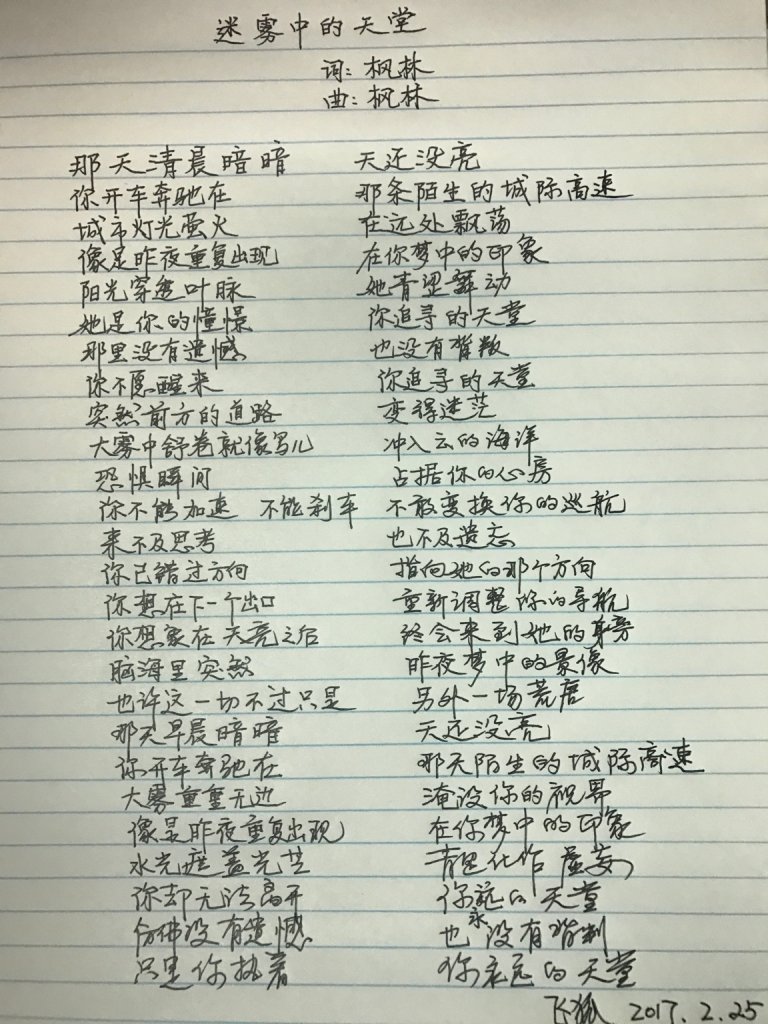 起止之间的对比能看出飞哥很能自律,这是一篇超长的歌词,直到最后几句,飞哥的自律都是很强的,但也能看出,最后是强弩之末。飞哥在努力,这个岁数应该的,也是好性格。但是需要和仗剑兄学学放开放下放飞。因为你努力不是没有代价的,你会累的。