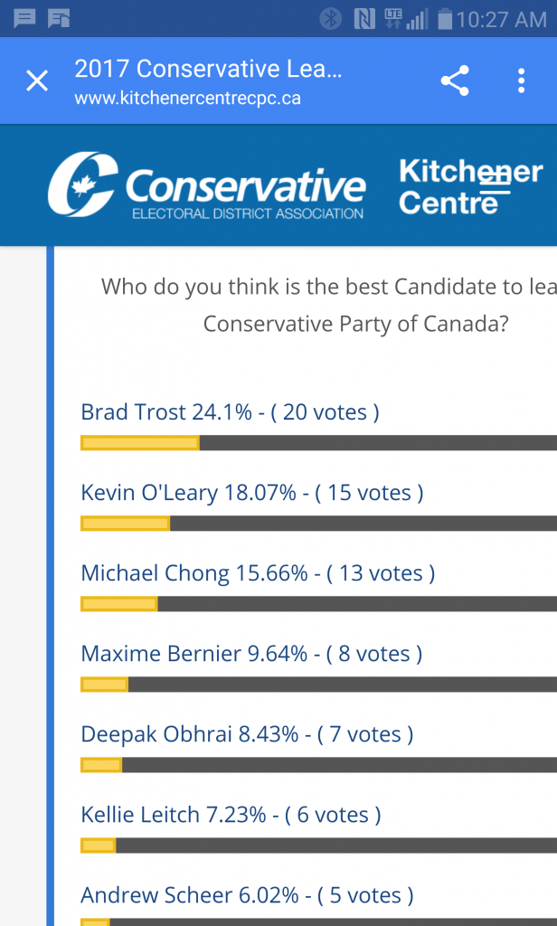 庆幸我作为移民,也有资格加入保守党,获取给Brad投票的权利。我的女儿15岁,虽然也是移民,没有那个绿本护照,也可以入党,然后能给Brad投一票。我们现在能做的,就是入党,给他投票,助他成为保守党领袖。然后本人要带女儿入籍,为了再给保守党在大选时再投一票!如果你跟我一样,请点击这个链接,https://donate.conservative.ca/membership 输入你的姓名,地址等信息,缴纳15块钱一年的党费,就实现了入党。然后等待选票在4月份邮寄到你的家中,为Brad投票。请注意,入党截止日期3月28日。没错,只剩下半个月了。急急急!