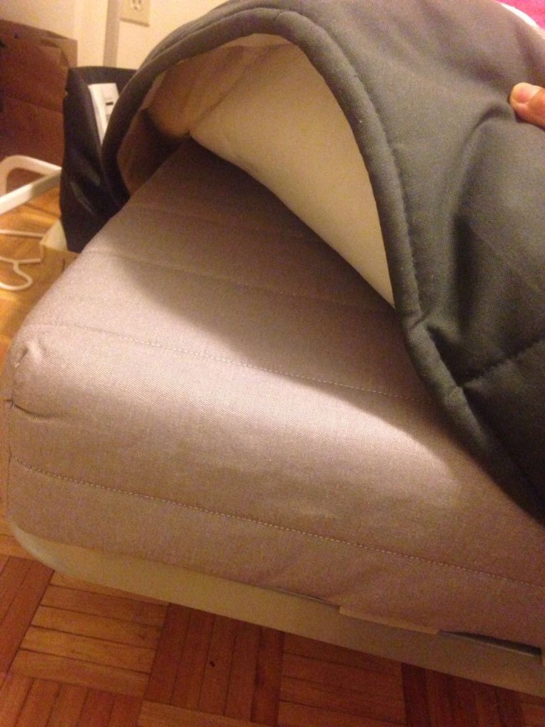IKEA的很厚的沙发cover,深蓝色,保护的很好。用了两年吧。