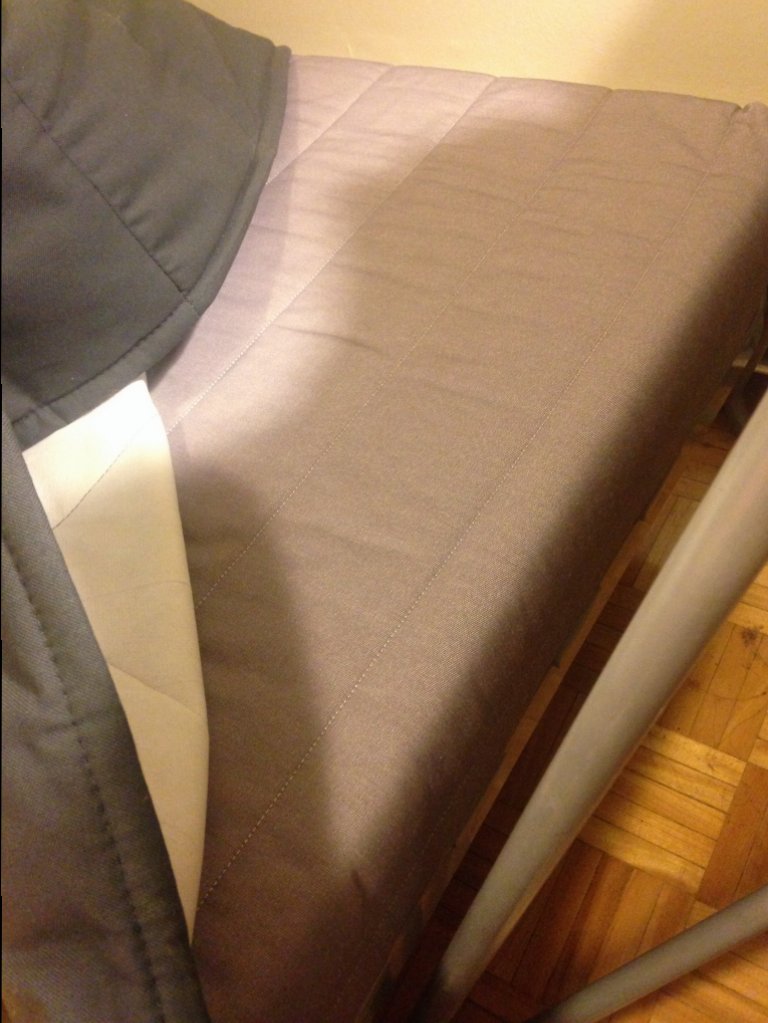 IKEA的很厚的沙发cover,深蓝色,保护的很好。用了两年吧。