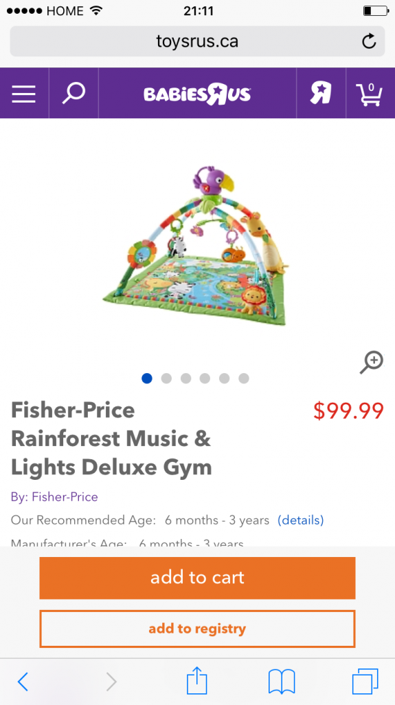 3. Fisher-Price的游戏垫,可以锻炼宝宝的抓握能力,由于冬天地上凉,都是放在床上给她玩,基本还跟全新的一样,$25转。