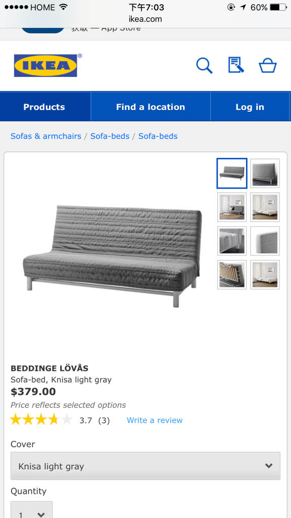 卖ikea沙发床,平时把它当沙发,家里有养猫,觉得掉毛很不好清洁,所以上面会铺上沙发罩(不仅方便换洗,颜色还很好看)。床变成沙发的locker有点不灵,但是固定沙发或者床垫还是很好的。先卖出150,需自取,在2201 Riverside。