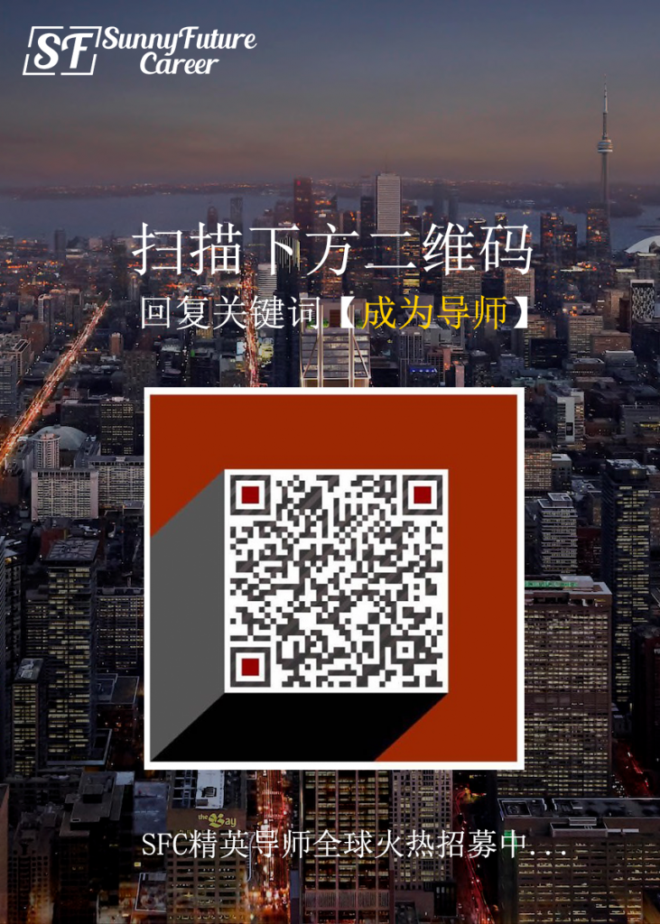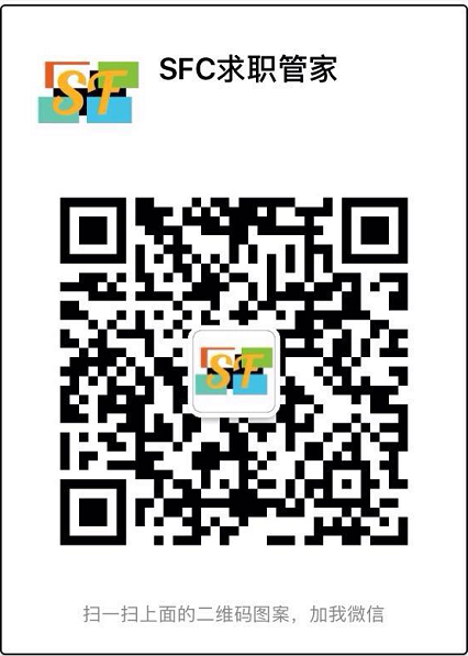 欢迎扫描下方二维码加入SFC求职群,群内每天分享实习职位,全职内推职位以及导师讲座,经验分享(现群人数已超过100人,请扫描添加下方的SFC求职管家后可直接拉进群)。