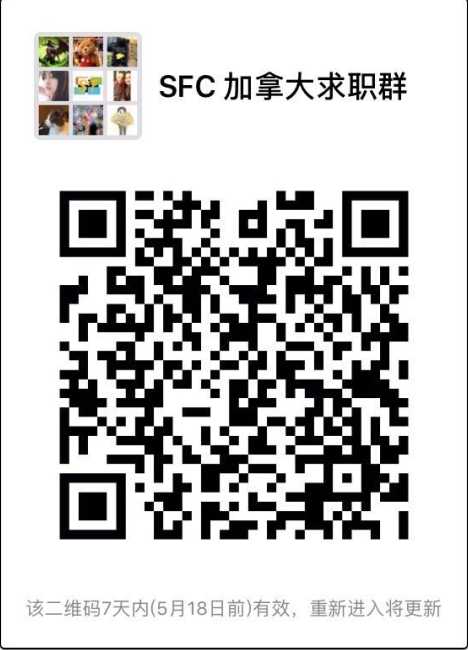 欢迎扫描下方SFC微信公众号二维码,掌握各行业加拿大工作职位内推以及职场动态!