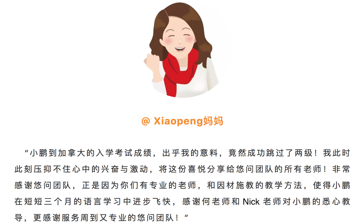 这位学生Z,情况比较复杂,本科学历,回国工作过,现在想移民,但是加分不够,英语基础很好,但是作文口语自己考两次都是6.0,上完悠问雅思冲刺班,作文、口语提到7分,学生都不敢相信,四项加分,递交EE,前后不到4个月就审核通过。今天告诉悠问的老师移民局现在开始寄护照。我们为这位学生感到由衷高兴,想要移民的同学,雅思考越高越好哦~~