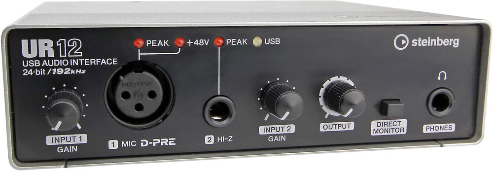 Steinberg ur12 audio interface. 独立声卡,耳机出口,音箱出口,一个XLR input一个Hi-Z input,可以分别连接麦克风和乐器。 很当心使用过,几乎全新。原装盒子和音乐制作软件Cubase AI都在。可以当独立声卡/DAC使用。