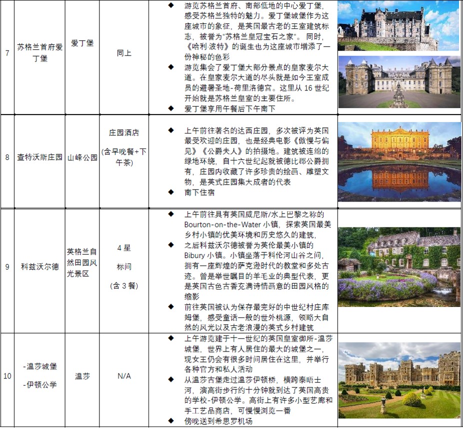 住宿:2晚成堡庄园酒店,7晚4星酒店,双人标间;