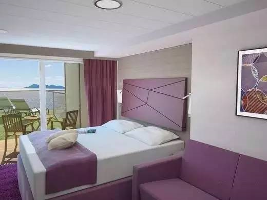 3、阳台房,拥有落地玻璃移门以及3至5平方米不等的阳台,房间面积在20平方米以上。以5至7晚的航线为例,阳台房的价格通常比内舱房贵200美金甚至更多。阳台房的位置楼层通常都比较好,一般都在5、6楼以上。阳台房看出去的风景当然也最佳,很多人选择阳台房就是看中它能够带给我们一片属于自己的海景。
