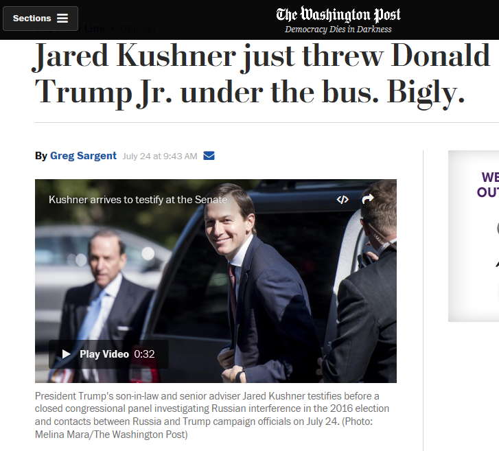 his closed-door testimony at a Senate committee, President Donald Trump’s son-in-law gave his own version of that infamous Trump Tower meeting on June 9, 2016, his meeting with Russian envoy Sergey Kislyak and more