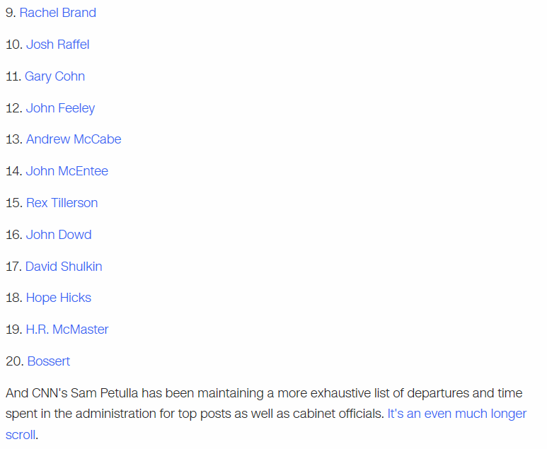 Papadopoulos被判刑(获特朗普总统特赦), Cohen入狱三年, Manafort获刑7.5年、Gates, Flynn, Patten认罪, Roger Stone获刑40个月;Flynn、Manafort、Stone获特朗普总统特赦; Steve Bannon、纳瓦罗被判四个月监禁