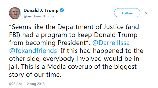 A decision about whether he sits for an interview with Mueller may also occur in the coming weeks, according to another one of his attorneys, Rudy Giuliani. Trump has seethed against what he feels are trumped-up charges against his former campaign chairman, Paul Manafort, whose trial began last week and provided a visible reminder of Mueller's work.